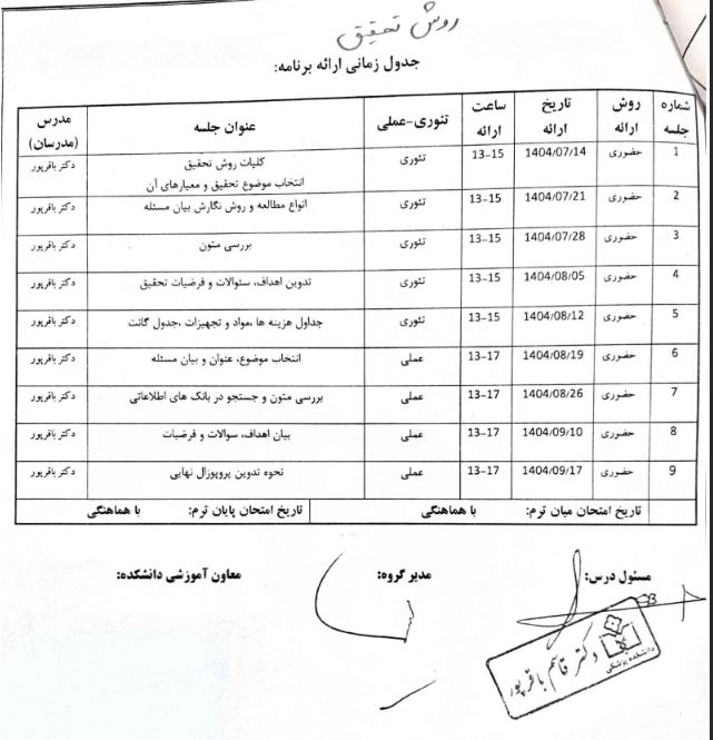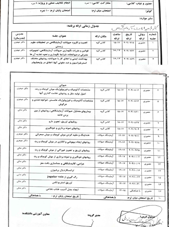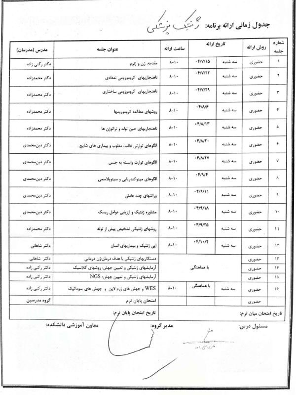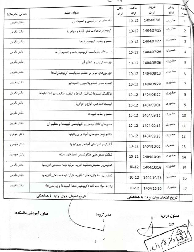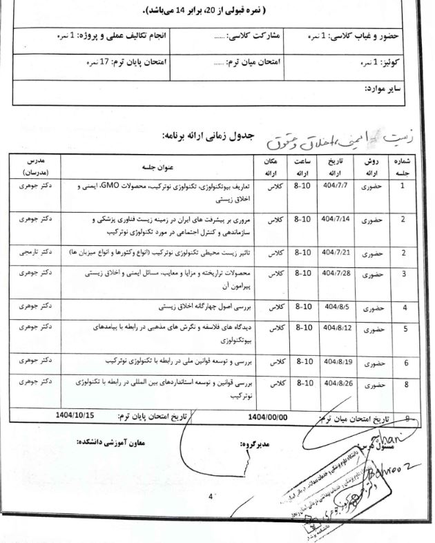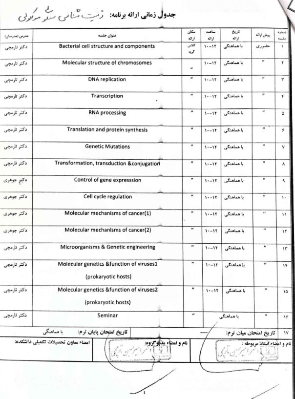 طرح درس واحد های دوره کارشناسی ارشد بیوتکنولوژی پزشکی