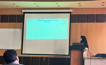 گزارش پیشرفت کار پایان نامه خانم سعیده سید برقی دانشجوی مقطع کارشناسی ارشد ژنتیک انسانی و خانم مهسا عالمی دانشجوی مقطع دکتری پزشکی مولکولی روز یکشنبه مورخ ۱۴۰۴/۰۶/۲۳ رأس ساعت ۱۰ صبح با حضور دانشجویان و اساتید گروه در محل سالن رازی برگزار شد. عنوان پایاننامه خانم سعیده سید برقی Investigating the expression of Vasopressin 2 Receptor regulating miRNAs in non-classical CD14dim/CD16++ monocytes versus endothelial cells و عنوان پایاننامه خانم مهسا عالمی Identification of microRNAs released from non-classical monocytes (CD16 /CD14dim) following treatment with Desmopressin (DDAVP) and validation of one microRNA using Real-Time PCR با راهنمایی خانم دکتر شاهانی میباشد.